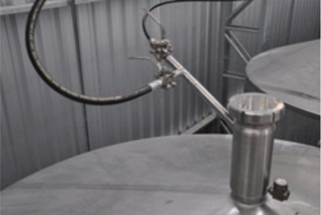 Equipamento destinado à esterilização de fechamento dos tanques para sucos integrais e naturais sem conservantes. Com camisa de vapor, purgador, fechamento sanitário SMS Dn 100mm e entrada de Nitrogênio Dn 10mm e vapor Dn 1/2 npt.